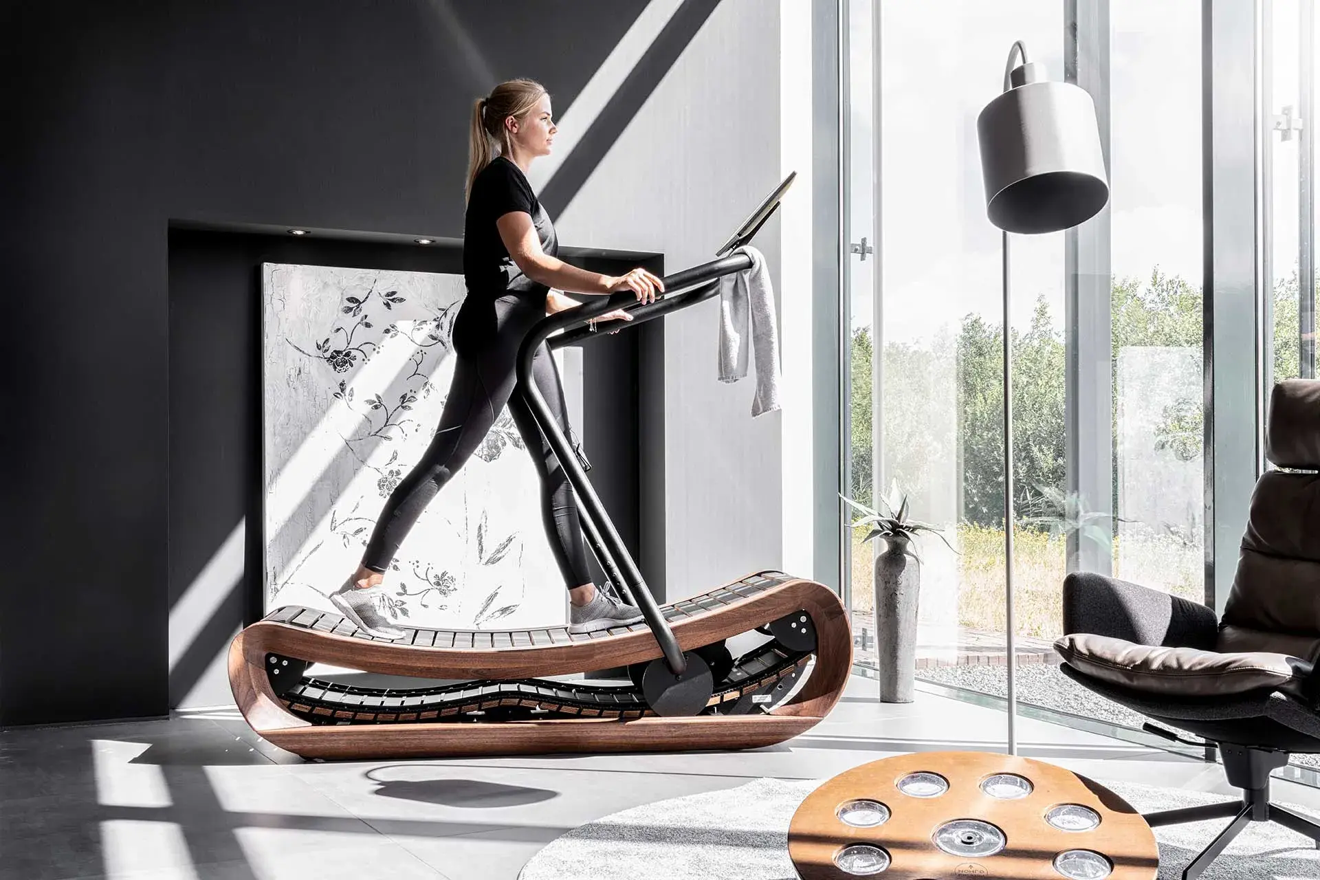 Ukrivljena linija steze omogoča prilagodljivo vadbo, od hoje do sprinta, pri čemer vsak uporabnik samostojno določa svojo hitrost. Oblika lesenega traku omogoča bolj naraven občutek teka ter zagotavlja intenzivnejšo in učinkovitejšo tekaško vadbo.