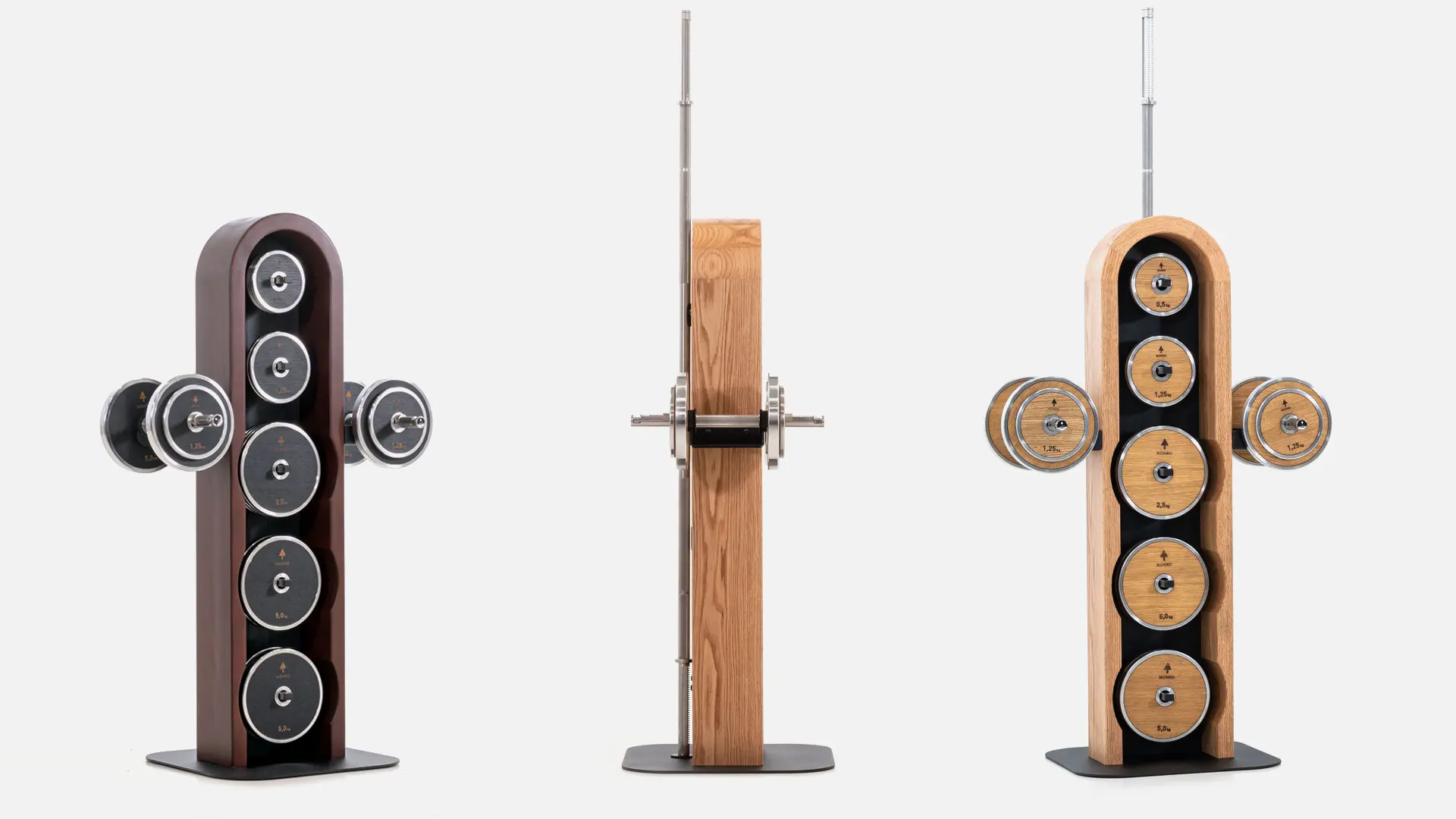 V kombinacija masivnega lesa in jekla, so tudi proste uteži eleganten del opreme vašega fitnesa ali stanovanja.